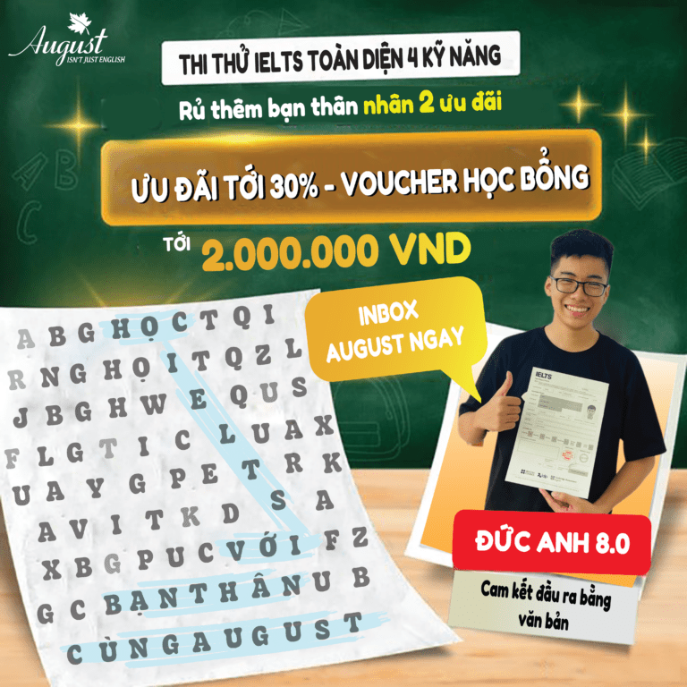 Việc học tiếng Anh, dù là giao tiếp hay IELTS, không chỉ dừng lại ở chứng chỉ mà phải được ứng dụng vào cuộc sống, công việc & học tập. Tại August, chúng tôi giúp học viên sử dụng tiếng Anh một cách thực tế và hiệu quả.