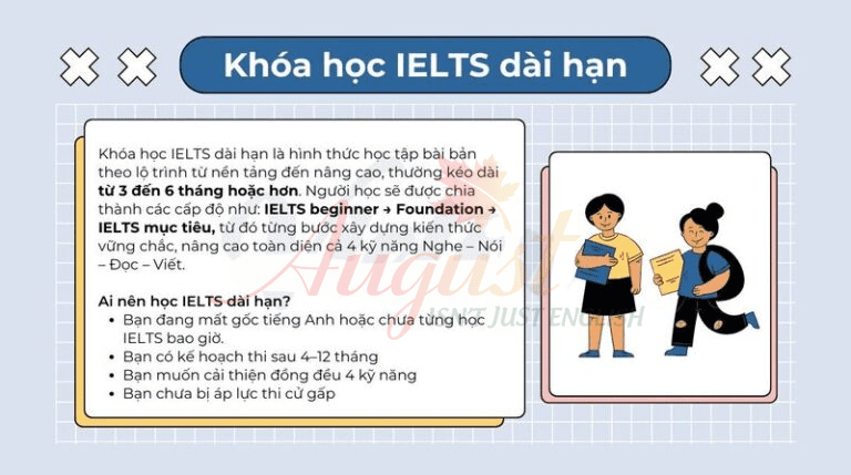 - → Khóa học IELTS dài hạn sẽ giúp bạn xây nền tảng chắc chắn và tiến bộ bền vững hơn.