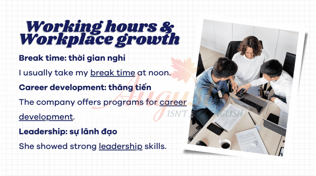 2.18. Từ vựng IELTS General Training: Chủ đề Working hours và Workplace growth