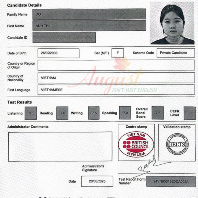 Điều August luôn tâm đắc nhất trong giảng dạy đó chính là được nhìn thấy học viên THAY ĐỔI, tiến bộ rõ rệt lên từng ngày. Nếu mỗi học viên cho August một nụ cười, 100 HV sẽ cho August 100 nụ cười. Chúng tôi không chắc chắn những nụ cười này có đi kèm mồ hôi & nước mắt hay không. Nhưng chúng tôi tin chắc rằng, tại August bạn sẽ được cam kết chương trình giảng dạy tốt nhất, chất lượng nhất và có TÂM hơn cả mong đợi từng khóa học.